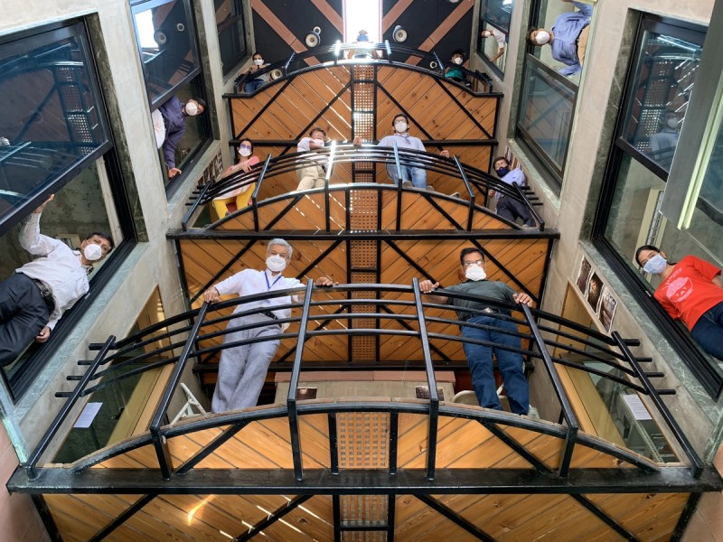 Shah started working by himself with the help of one peon. Slowly, the studio grew bigger with the addition of a draftsman and a model maker, and then came engineers and architects. With a modest Bajaj scooter Shah's team started visiting various sites all over the city and beyond. Today, the practice has on an average 21 colleagues from all over the country and the world. The team comprises of architects, engineers, research assistants, model makers, accountants, and administrative staff who all work with utmost honesty and dedication. The practice has contributed extensively to the society at large not only by designing several iconic buildings of various scales but also through many publications and regular lectures and exhibitions that are hosted at their office in Ahmedabad.